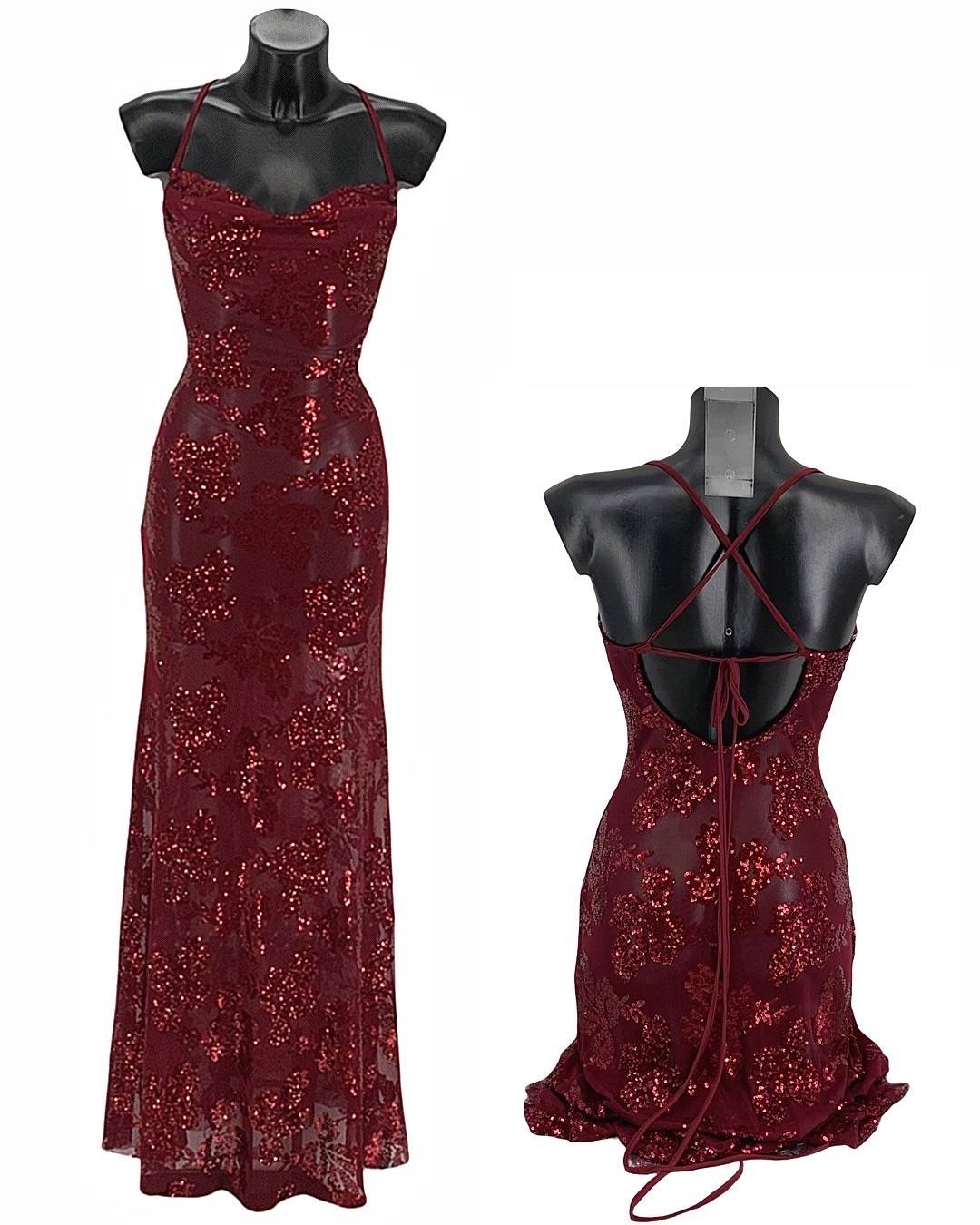 Sequin Maxi Dress with Open Back Design - Bordeaux