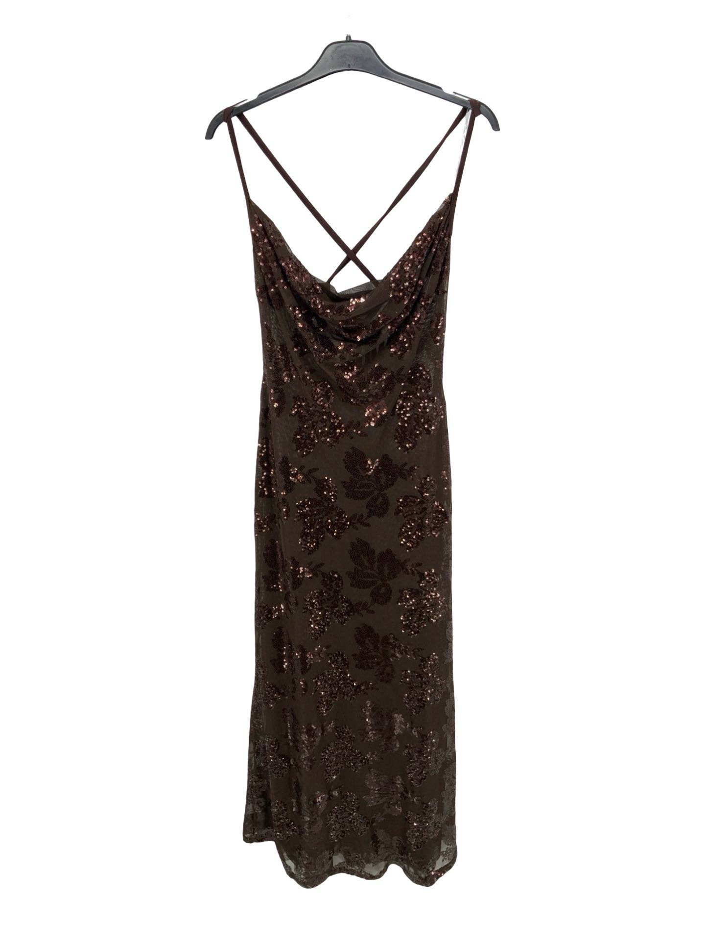Sequin Maxi Dress with Open Back Design - Brown