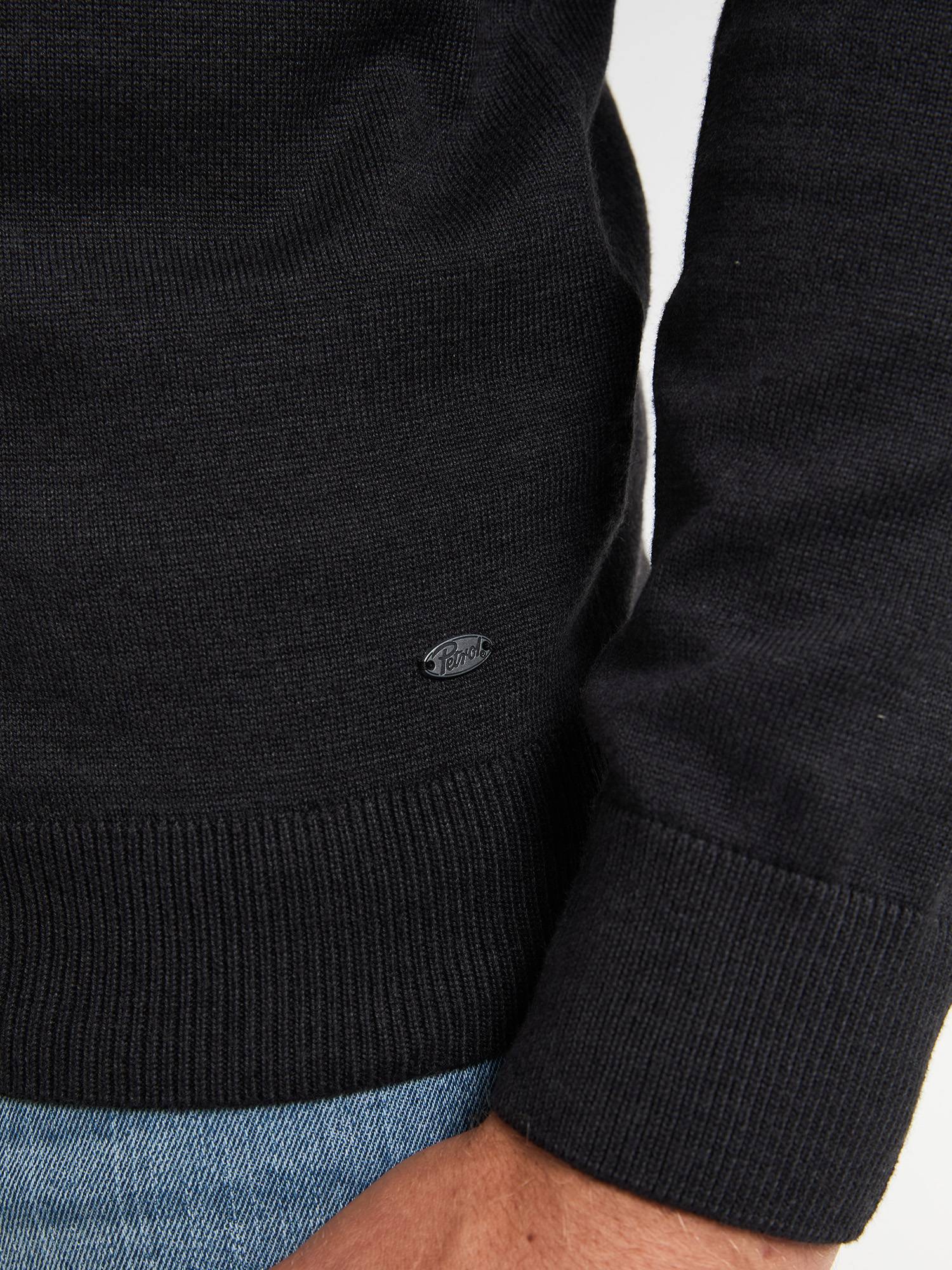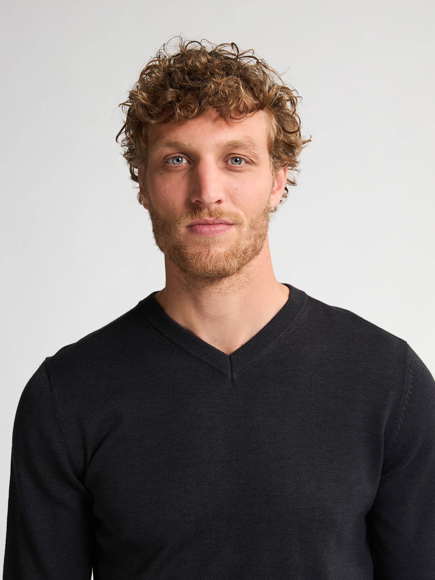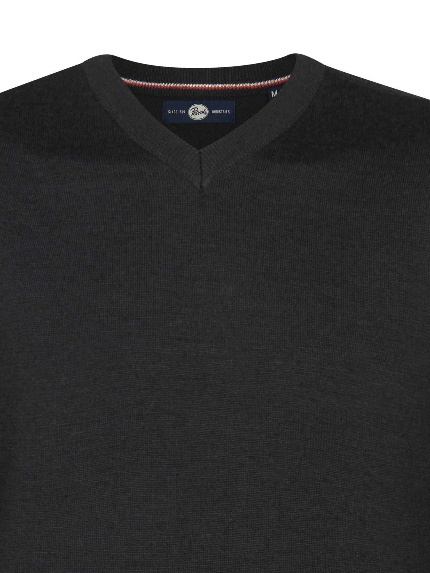 Petrol Fine-knit V-neck Sweater Whitefish - Black