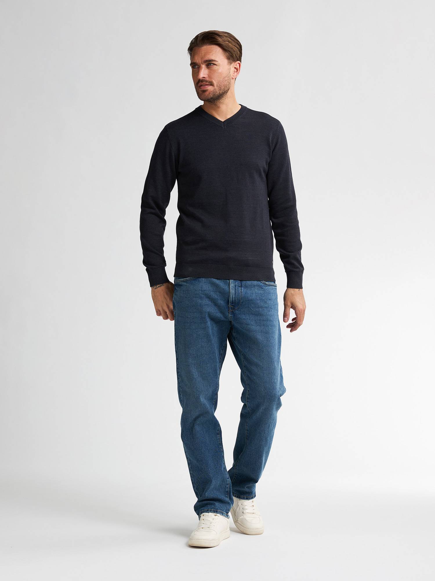 Petrol Fine-knit V-neck Sweater Whitefish - Blue