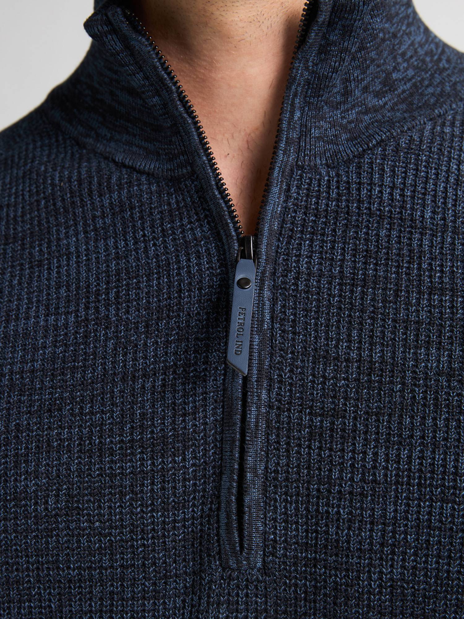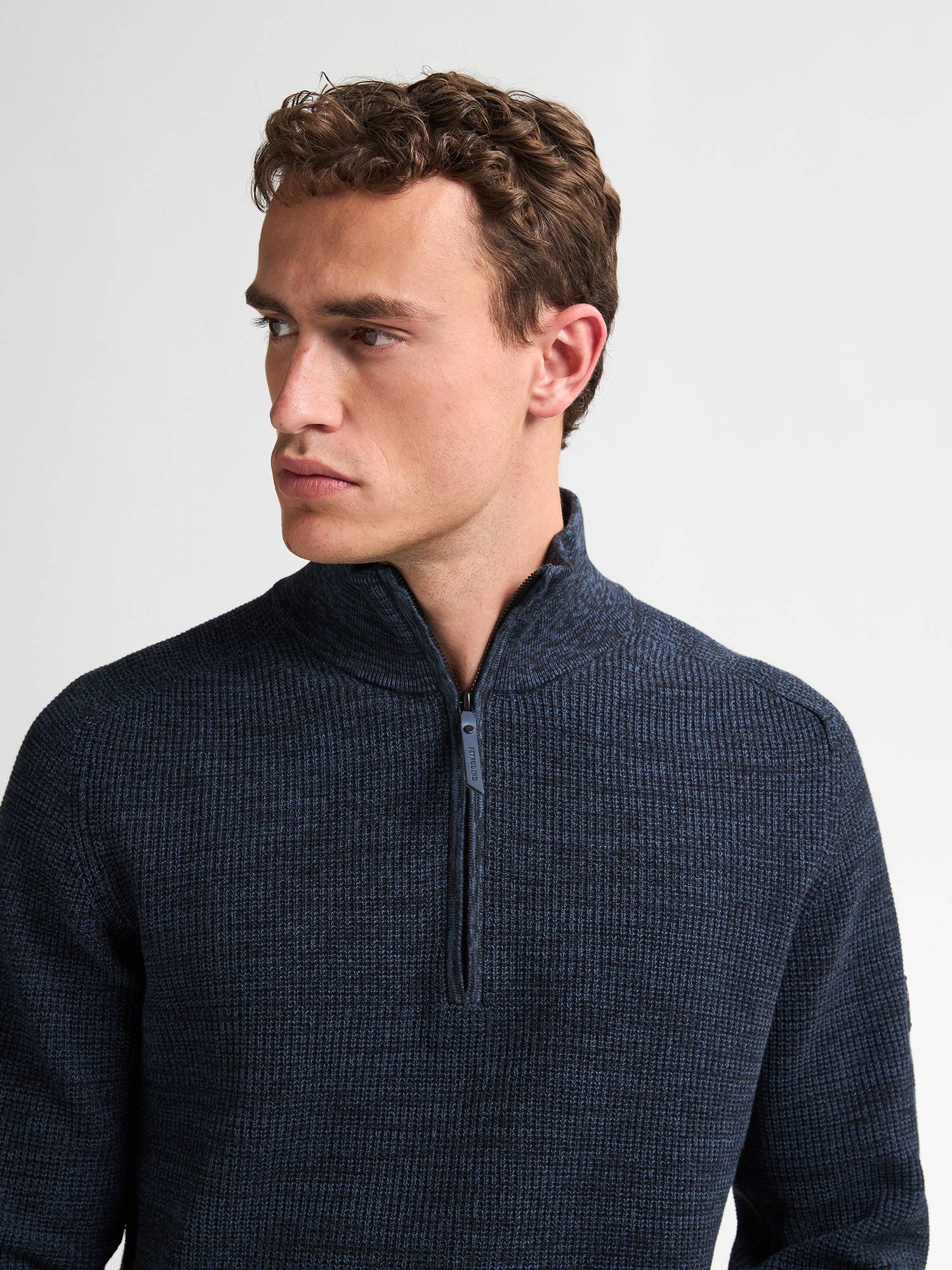 Petrol Knitted Half-Zip Sweater Nashville - Blue