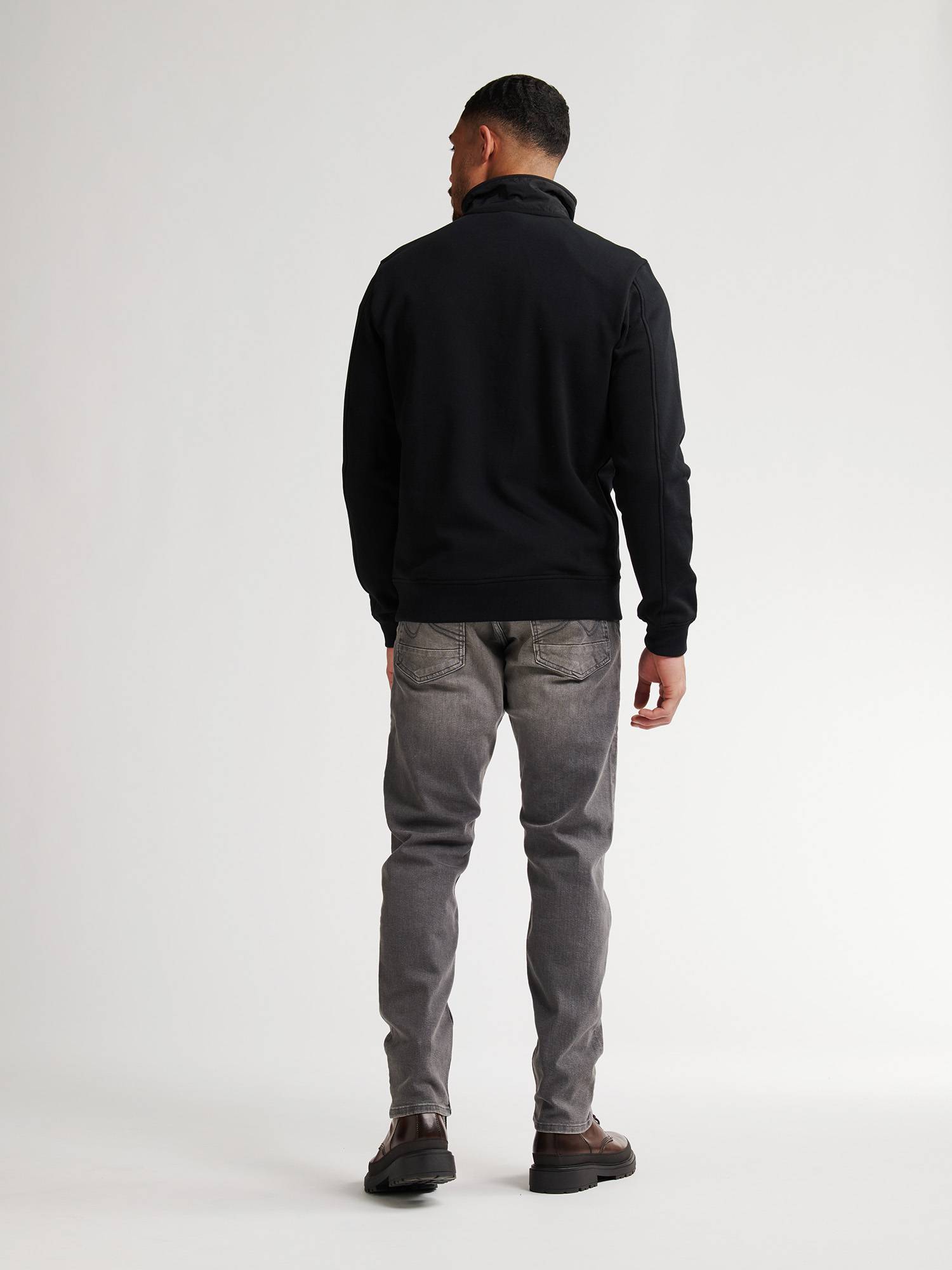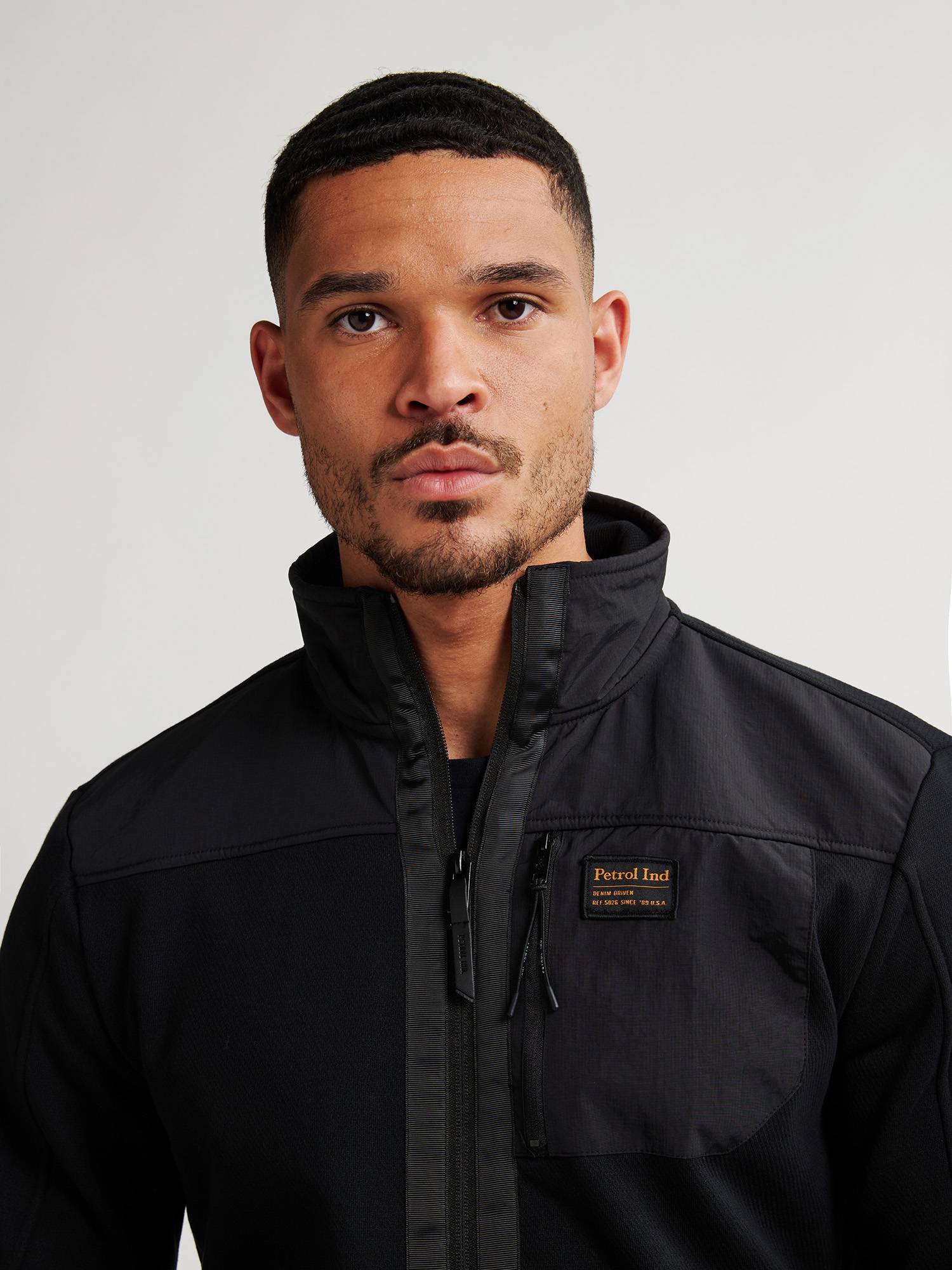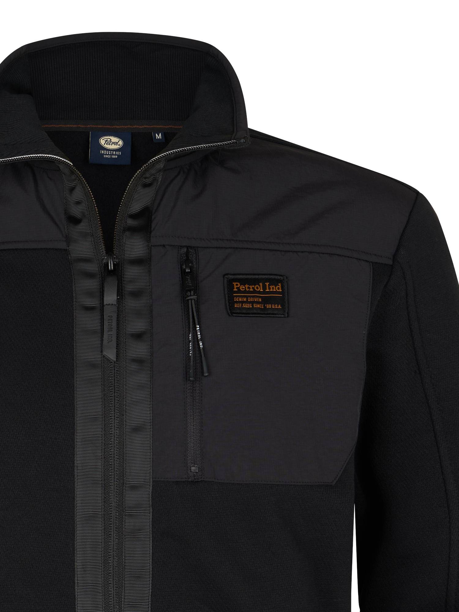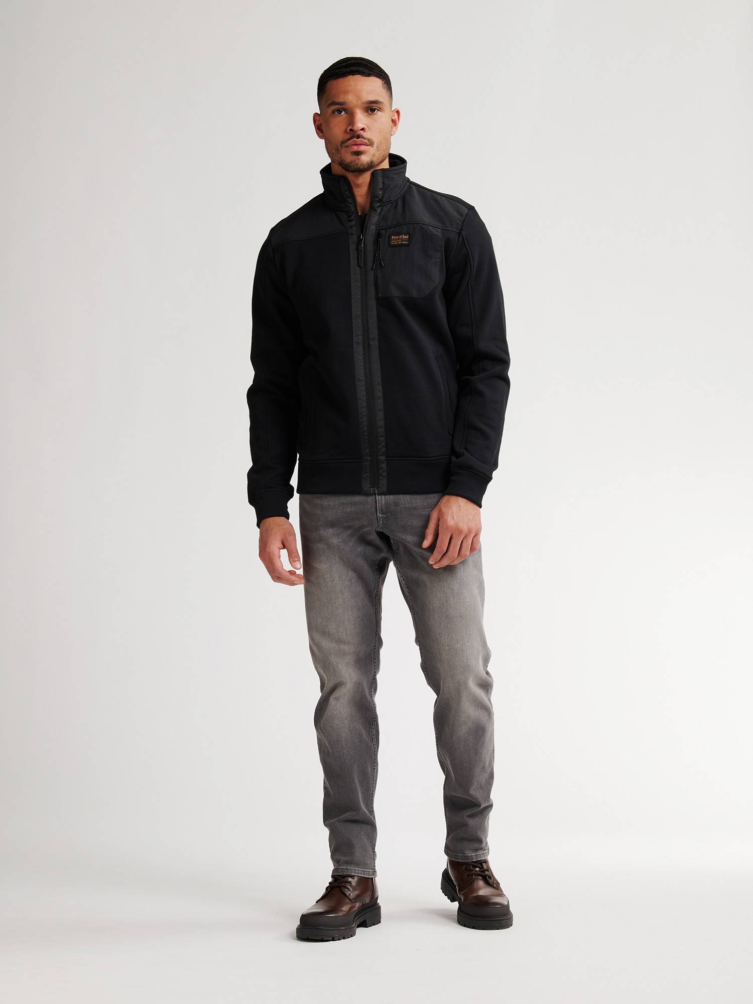 This men's sweater with a collar combines comfort and a rugged look. Details such as the zippered chest pocket and the mix of materials contribute to its tough appearance.