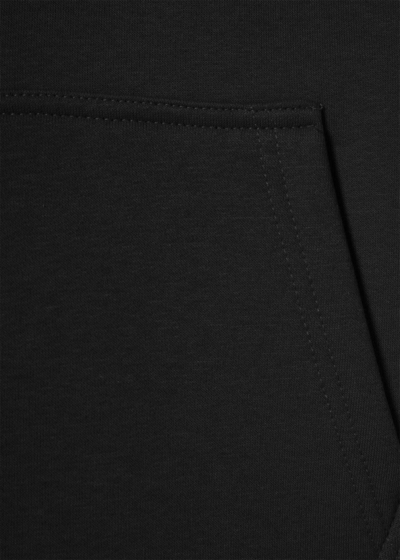 Vinyl hoodie with back and front print. With kangaroo pockets and ribbed hem.
