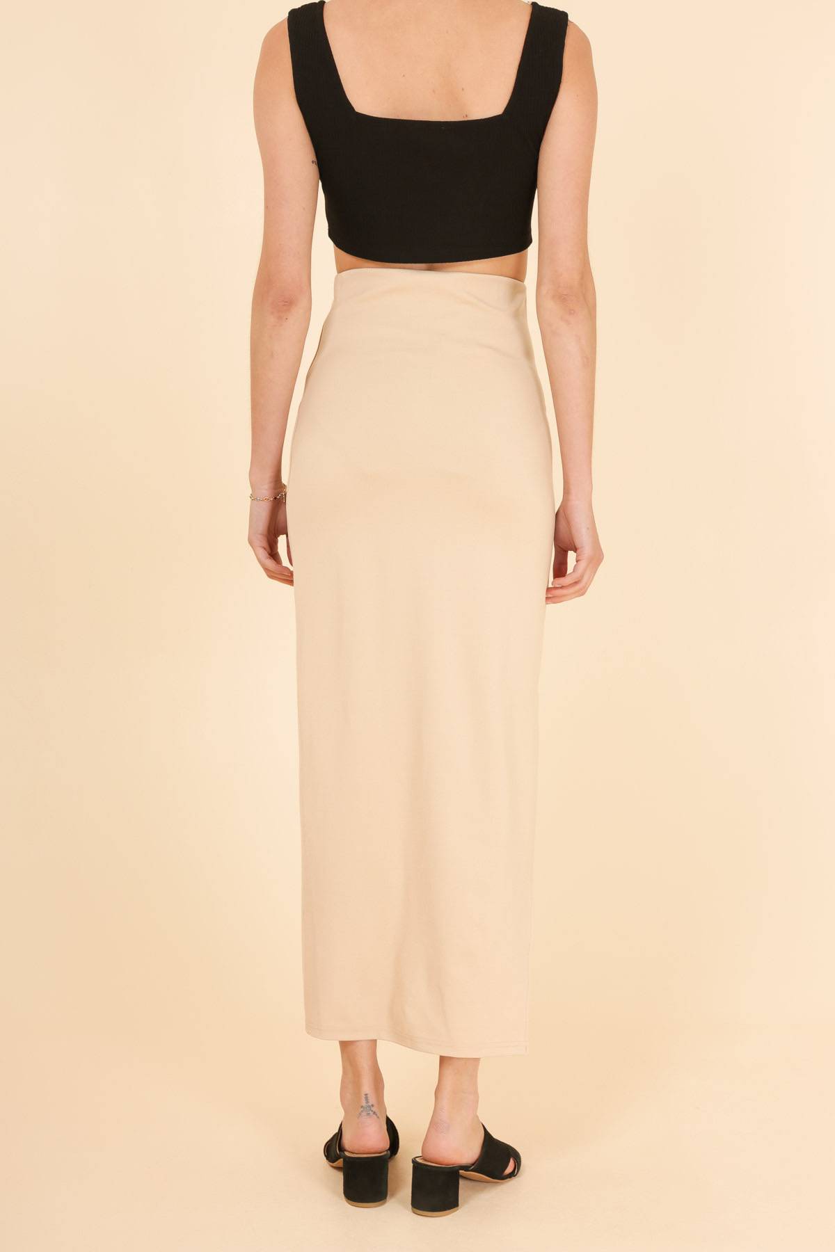 Long high-waisted skirt split on the side in a quality cotton fabric, tight, with a little thickness, very comfortable, stretchy and with a sheathing effect.