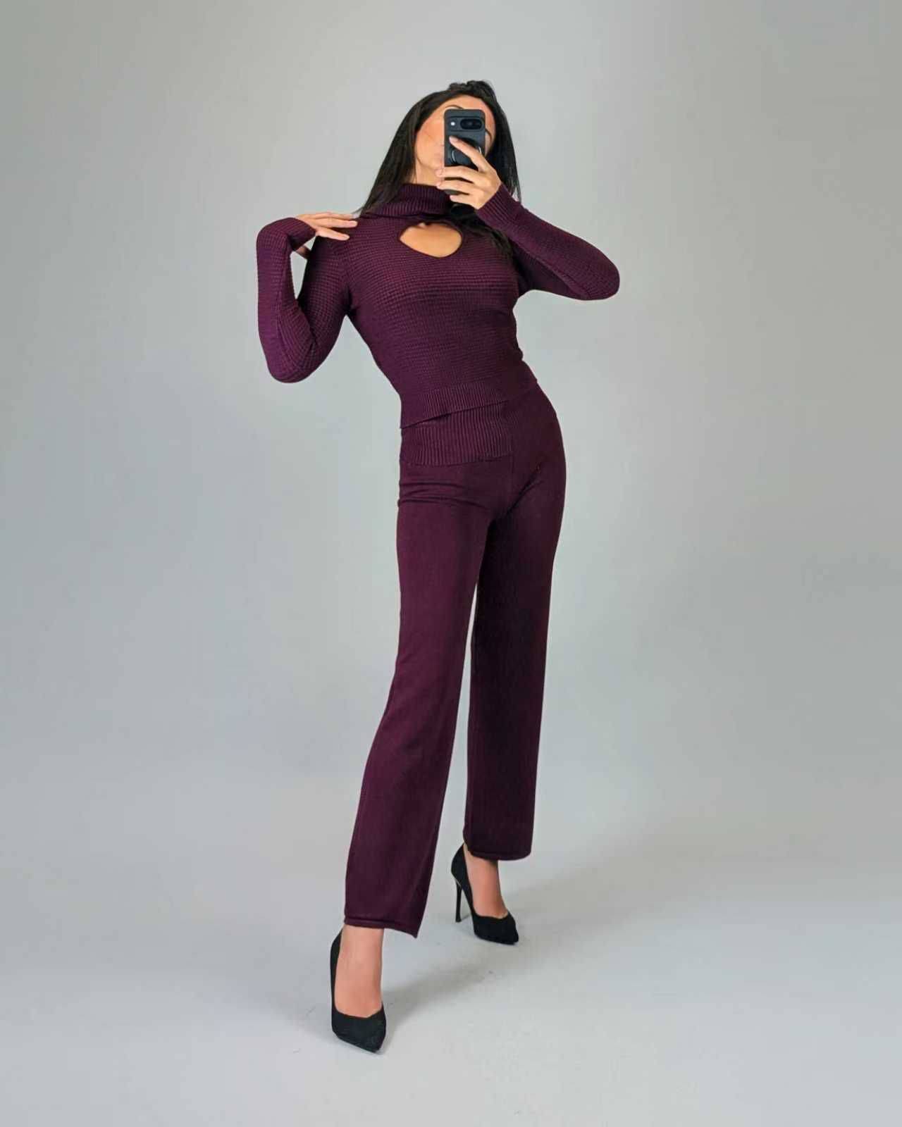 Online Boutique Cyprus | No Limits Fashion | Cut-Out Turtleneck Sweater with Button Detail - Bordeaux