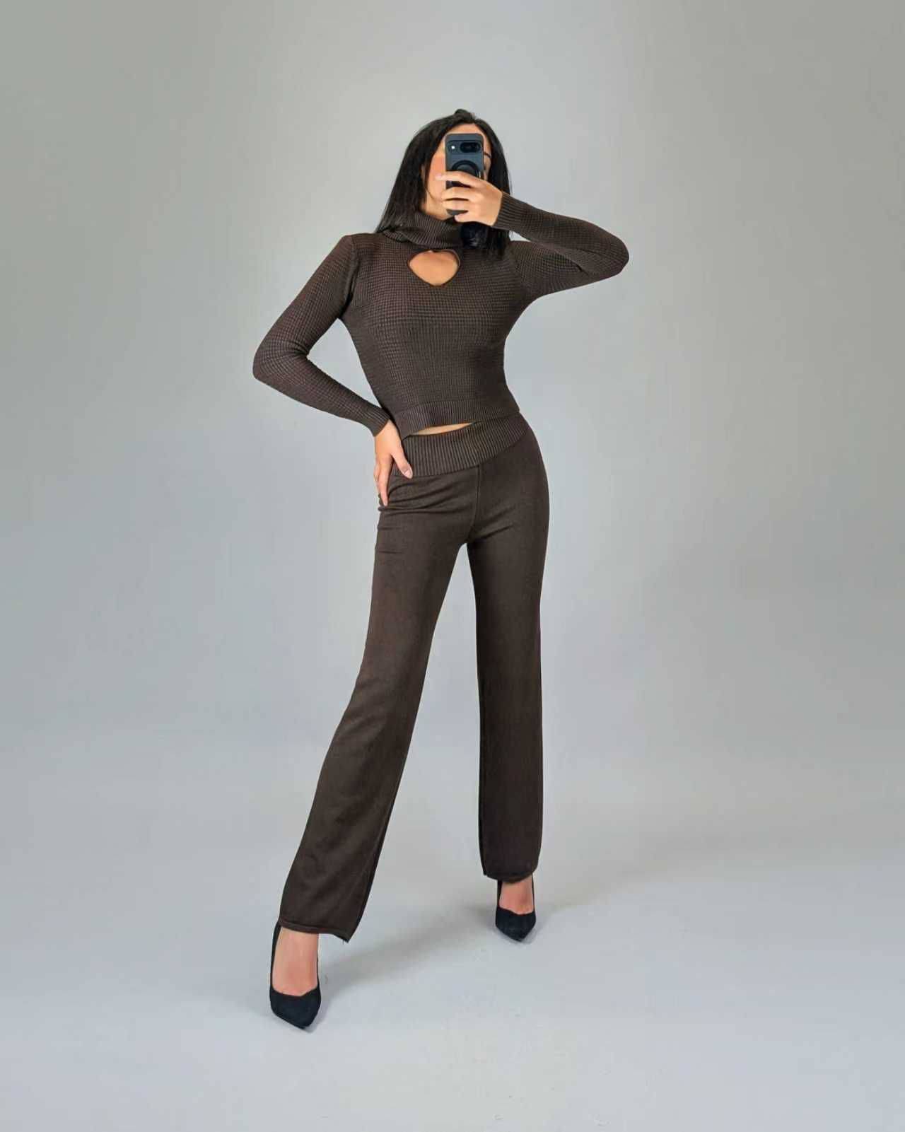 Online Boutique Cyprus | No Limits Fashion | Cut-Out Turtleneck Sweater with Button Detail - Brown