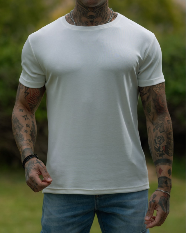 Vinyl Gold Elastic Cuff T-shirt – White