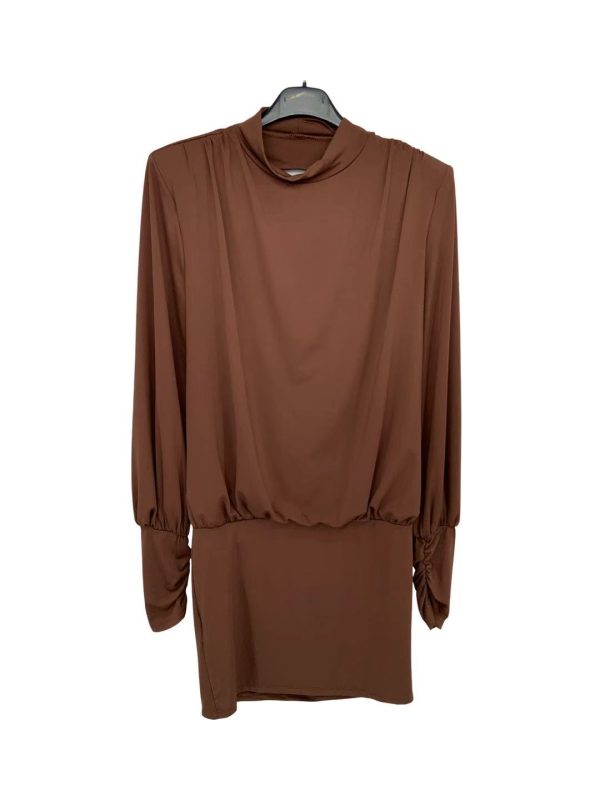 Sequin Open Back Mini Dress with Flared Sleeves – Brown