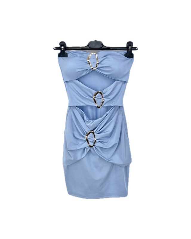 Printed Bodycon Off Shoulder Dress – Sky Blue