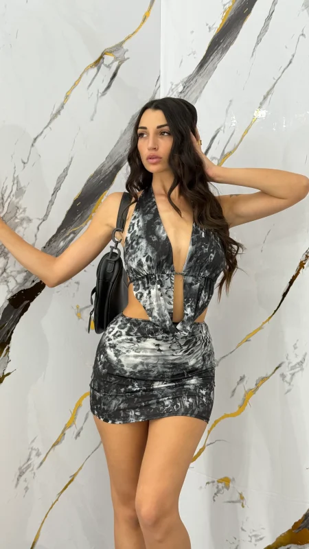 Sequin Open Back Mini Dress with Flared Sleeves – Brown