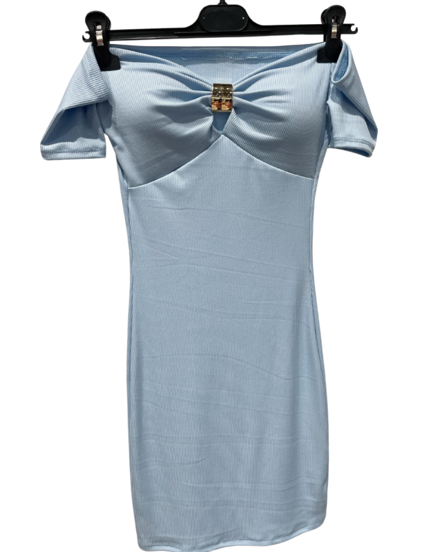 Off-Shoulder Ribbed Mini Dress – Sky Blue