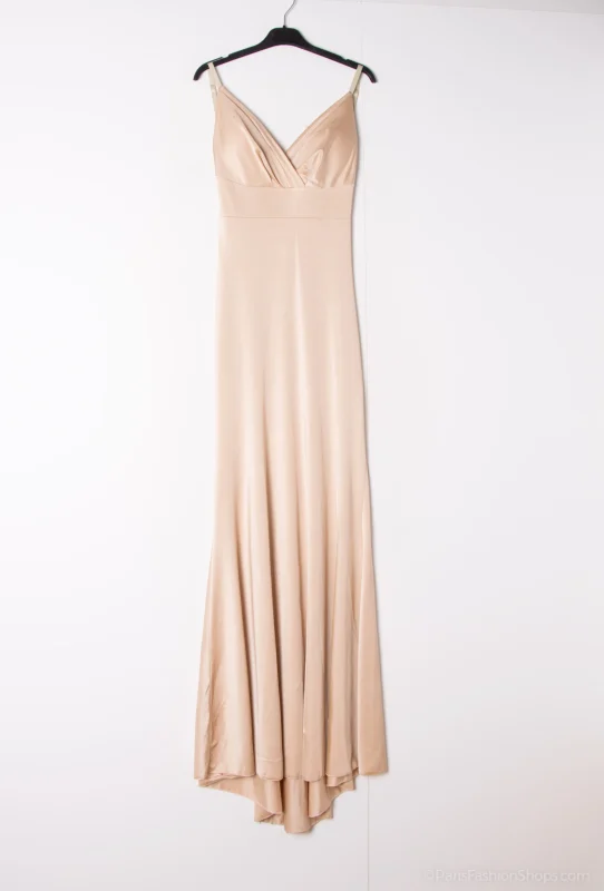 Rhinestone Maxi Dress with Lace-Up Back – Beige