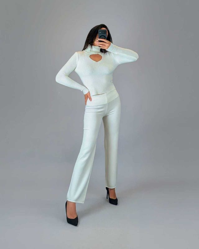 Cut-Out Turtleneck Sweater with Button Detail – White