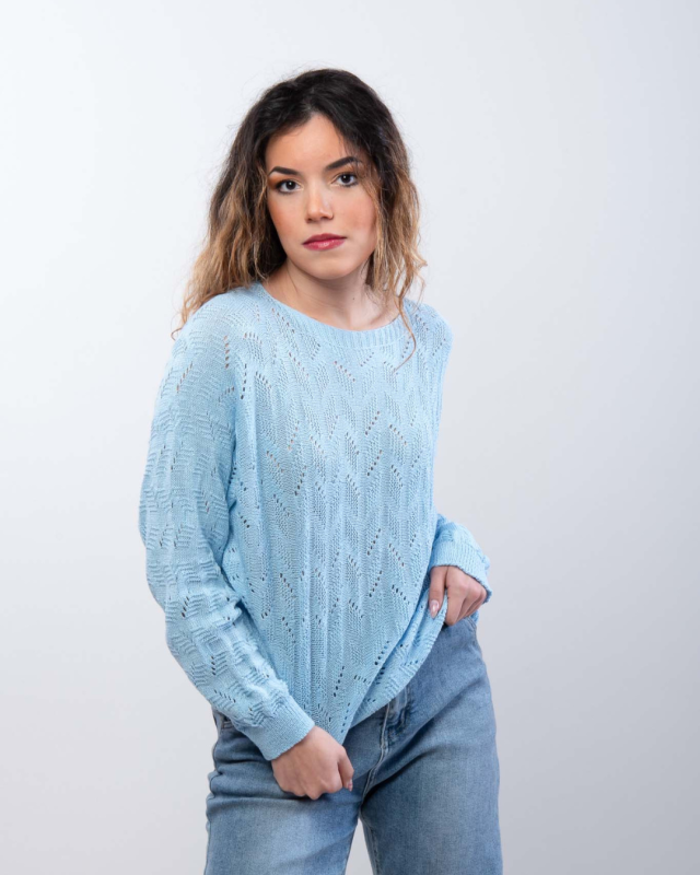 Open-Knit Sweater – Sky Blue