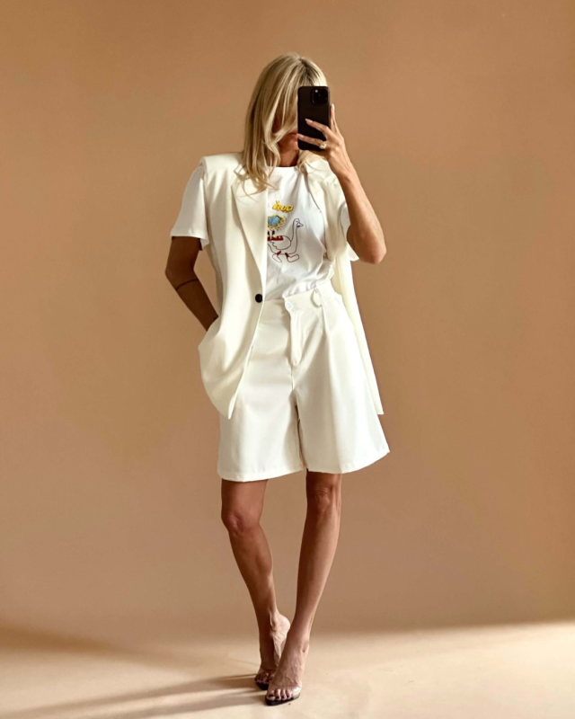 High-Waisted Tailored Shorts – White