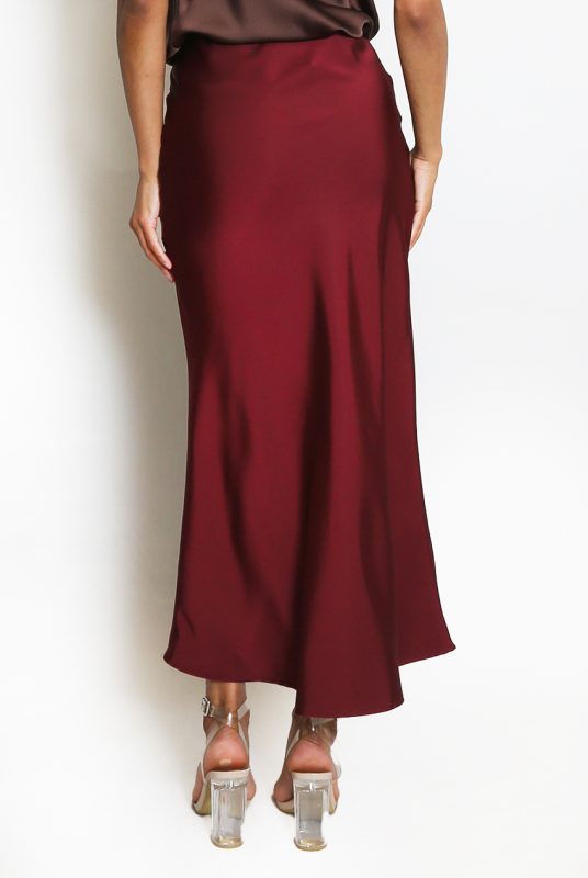 Satin Bias Cut Flowing Maxi Skirt – Bordeaux