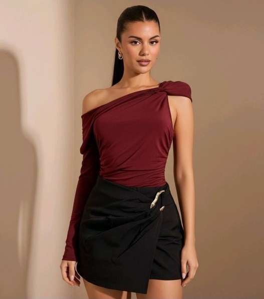 Wrap Skort with Gold Ring Detail – Bordeaux
