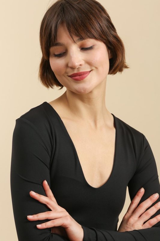 Long-Sleeved V-Neck T-shirt – Black