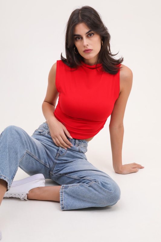 High Neck Top – Red