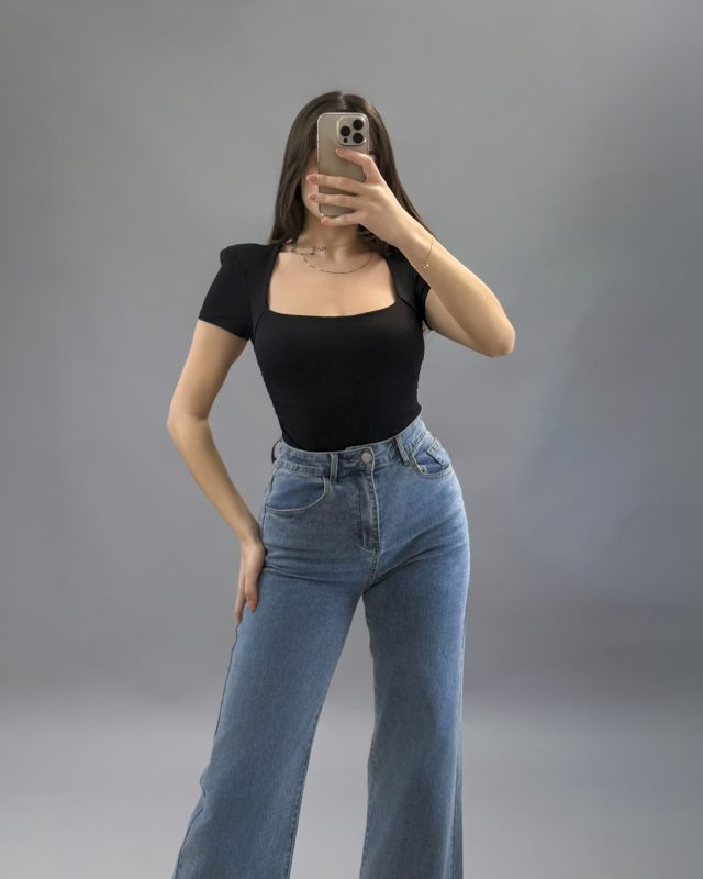 Square-Neck Bodysuit – Black