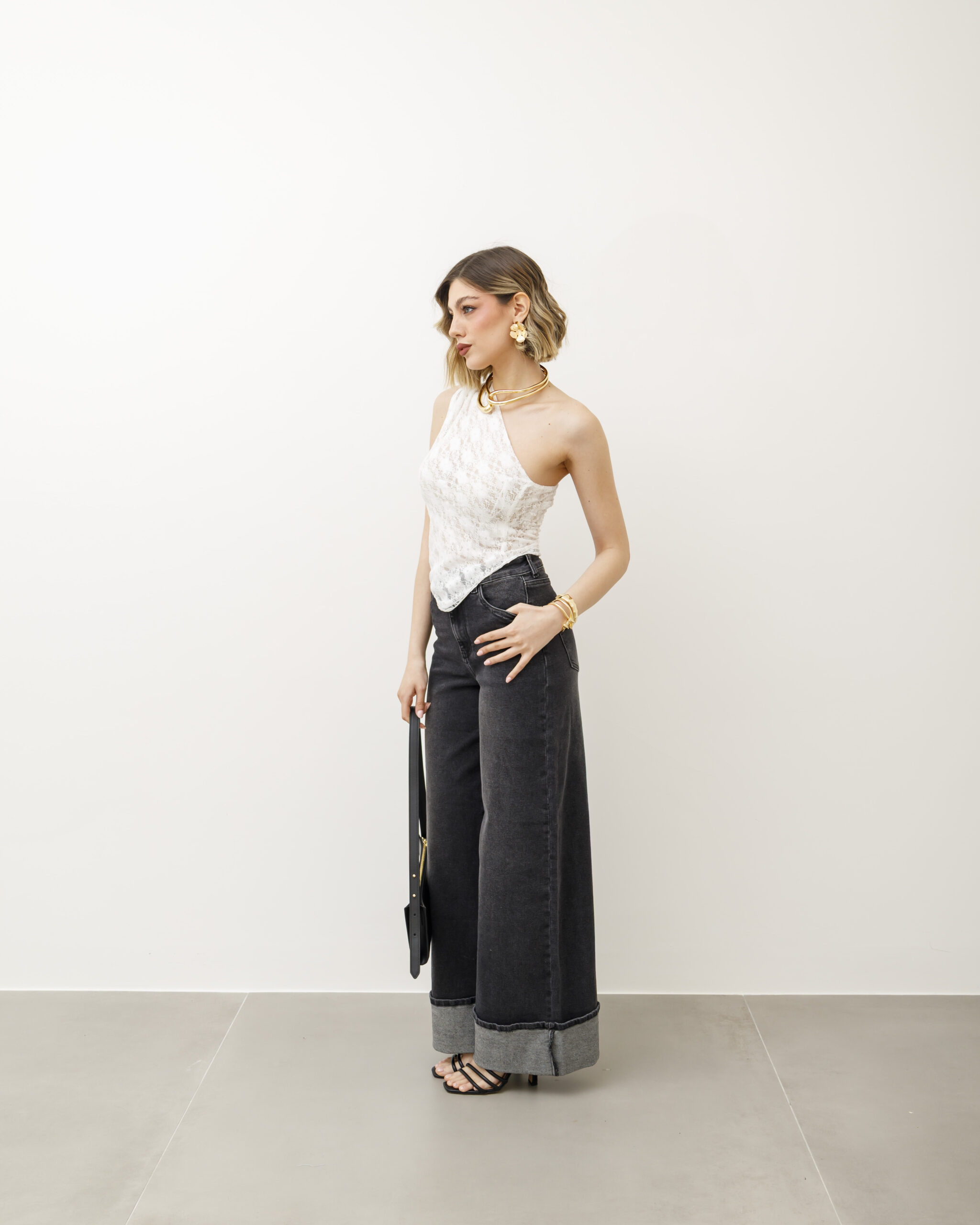 Satin Tie-Front Bell Sleeve Crop Top – Sky Blue