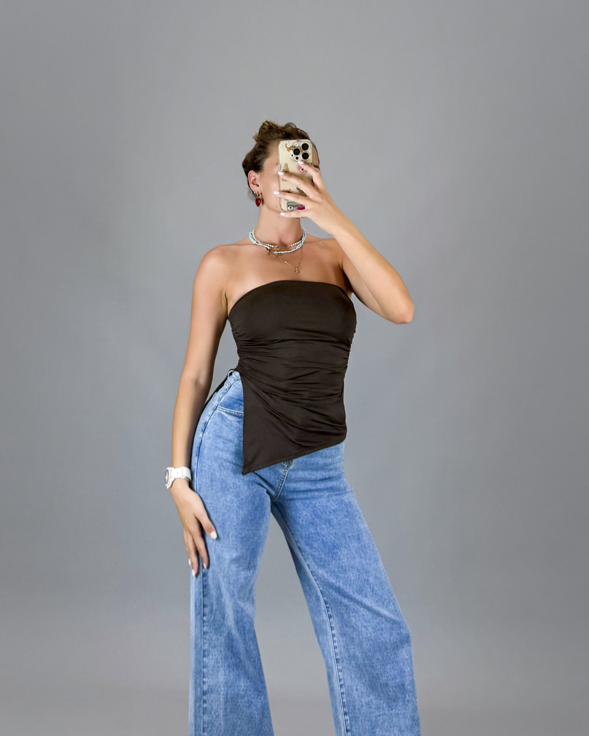Satin Tie-Front Bell Sleeve Crop Top – Sky Blue