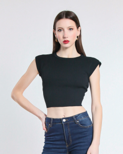 Cropped Viscose Top – Black