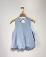 Satin Tie-Front Bell Sleeve Crop Top – Sky Blue