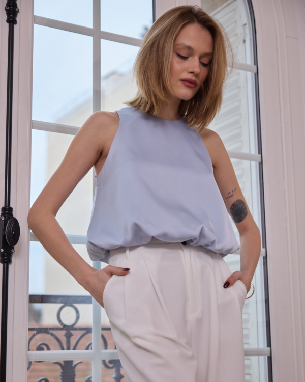 Satin Tie-Front Bell Sleeve Crop Top – Sky Blue