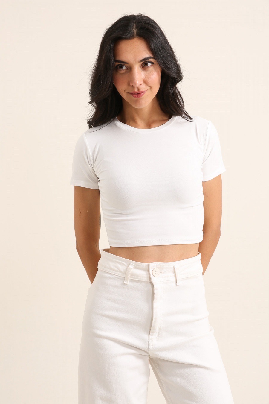 Cropped Viscose Top – Sky Blue