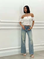 Cropped Viscose Top – White