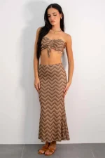 Chevron Crop Top & Maxi Skirt Set – Brown