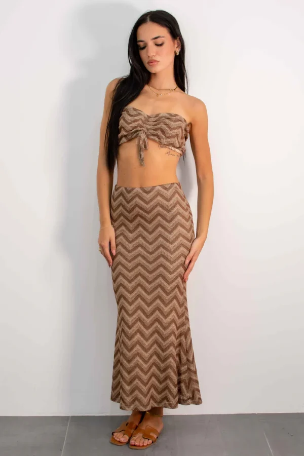 Chevron Crop Top & Maxi Skirt Set – Brown