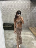 Chevron Crop Top & Maxi Skirt Set – Brown