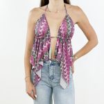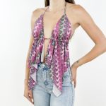 Satin Tie-Front Bell Sleeve Crop Top – Sky Blue