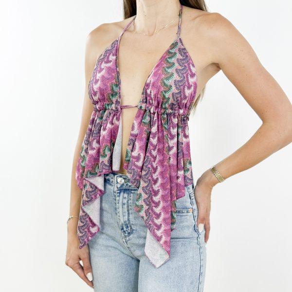 Satin Tie-Front Bell Sleeve Crop Top – Sky Blue
