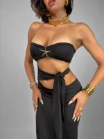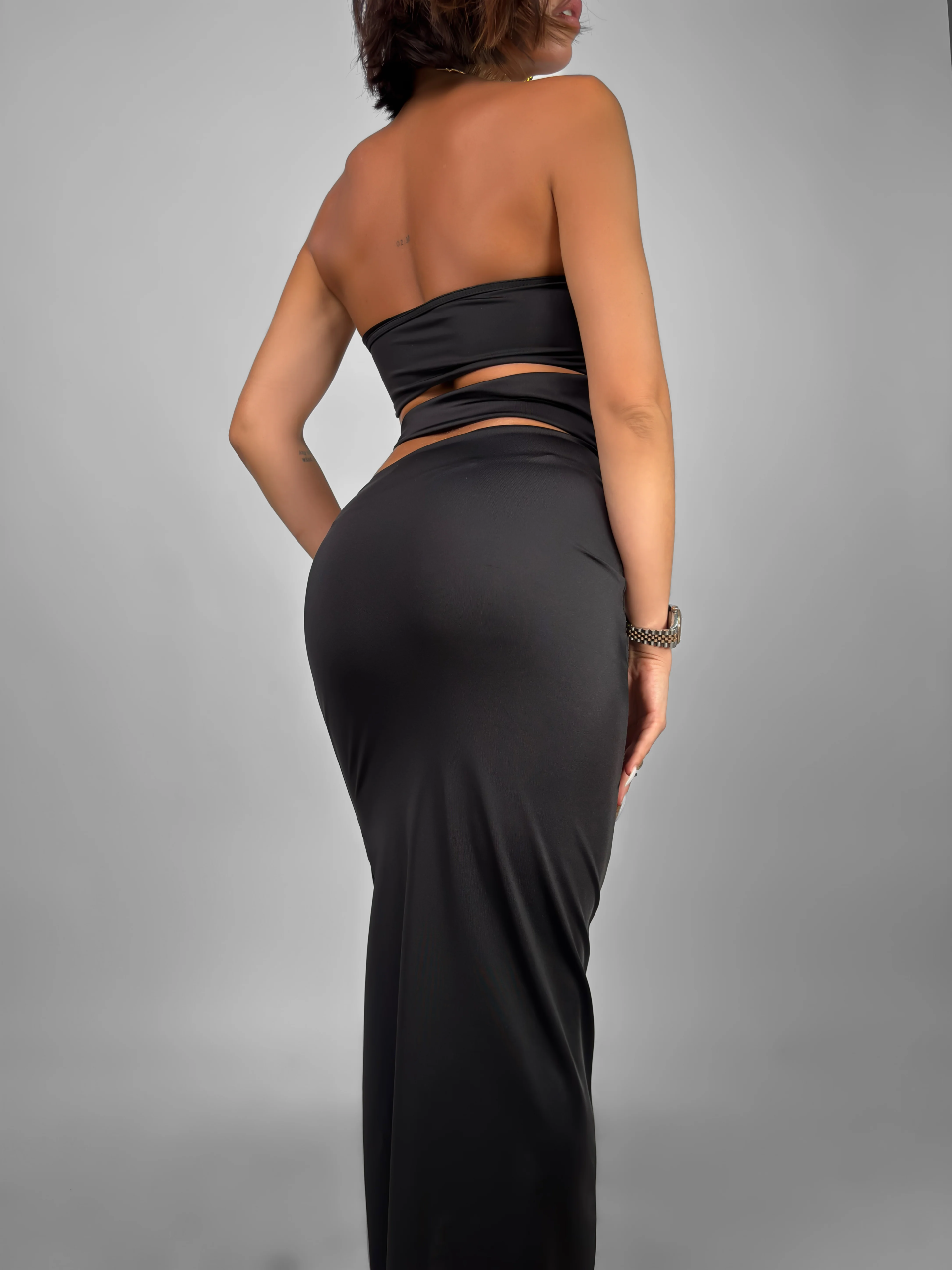 Midi dress in a bold cutout design, embellished with an eye-catching star-shaped jewel. Crafted from super-stretch fabric, it hugs the figure with confidence and comfort, perfect for those who want to stand out with style and personality.