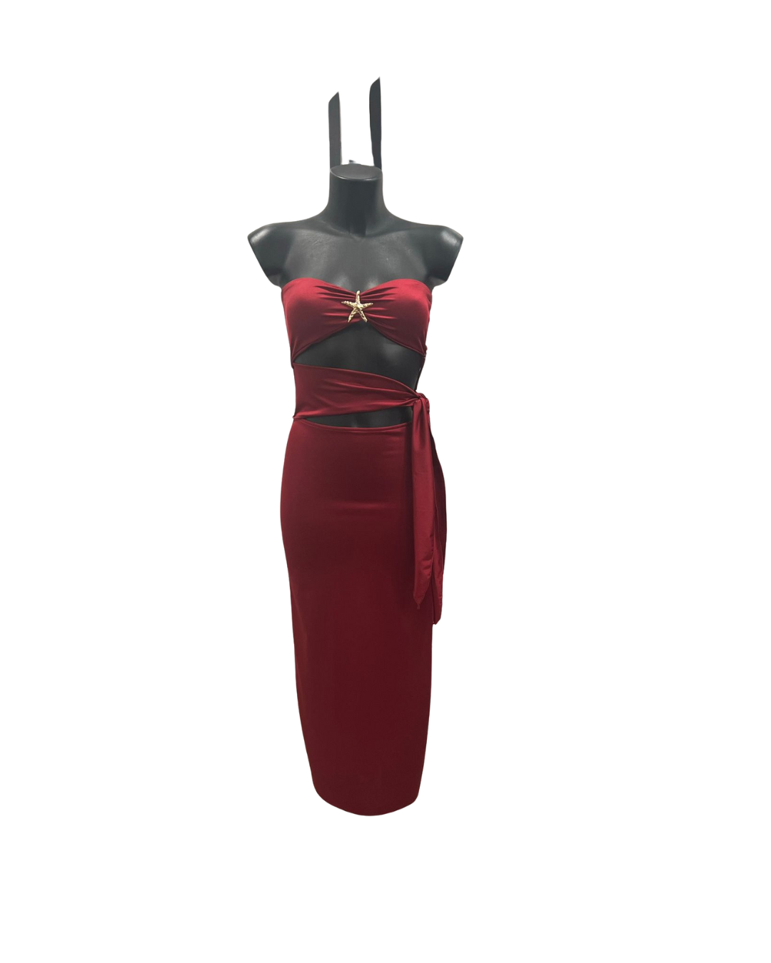 Cut-Out Midi Dress with Gold Star Accent – Bordeaux