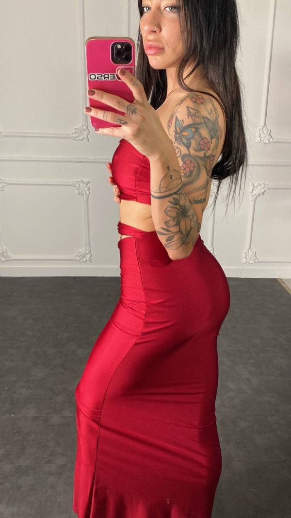 Cut Out Strapless Top and Skirt Set – Red