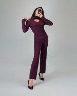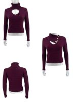 Cut-Out Turtleneck Sweater with Button Detail – Bordeaux
