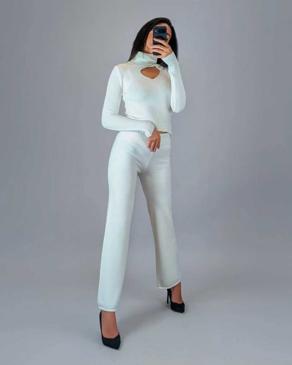 Cut-Out Turtleneck Sweater with Button Detail – White