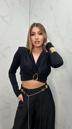 Satin Tie-Front Bell Sleeve Crop Top – Sky Blue