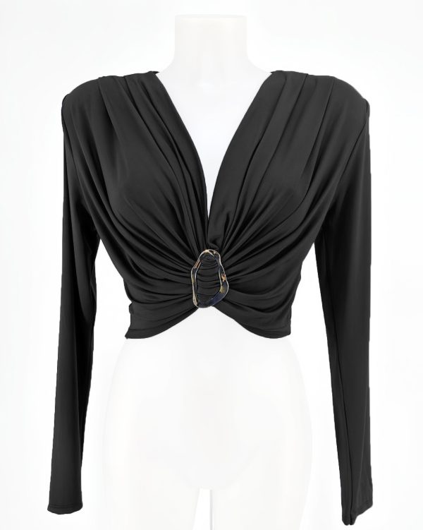 Satin Tie-Front Bell Sleeve Crop Top – Sky Blue