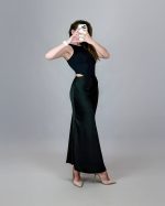 Satin Tie-Front Bell Sleeve Crop Top – Sky Blue