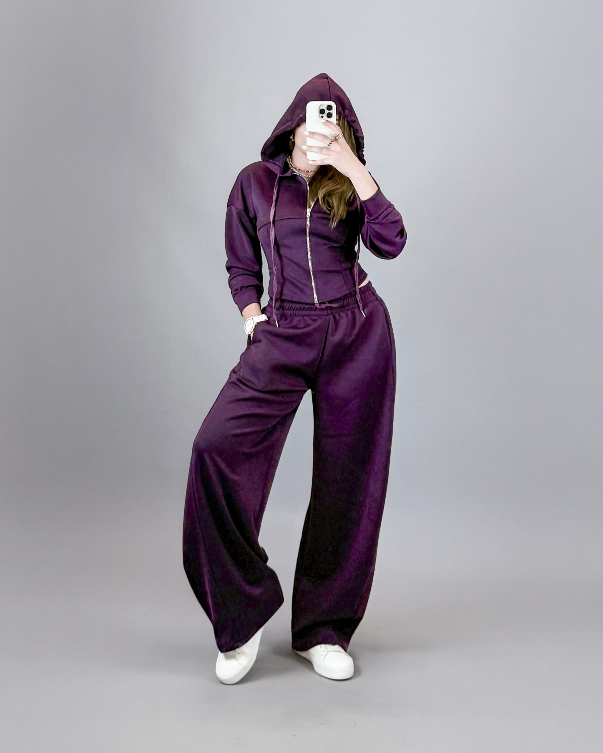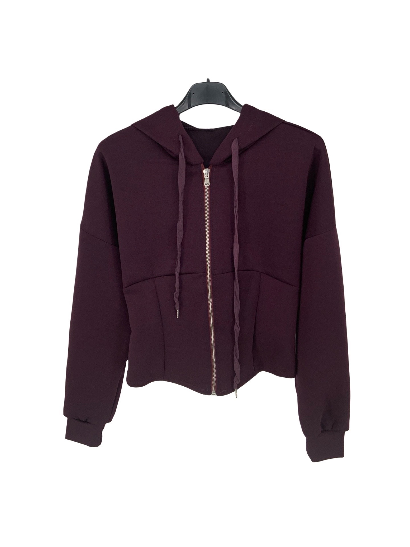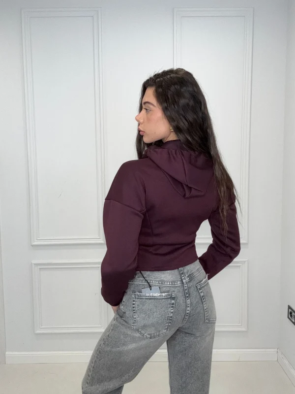 Fitted Waist Cropped Zip-Up Hoodie – Bordeaux