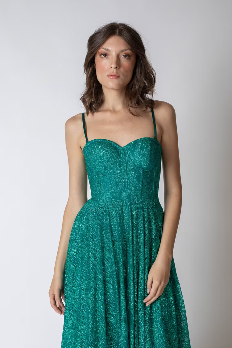 Glitter Midi Bustier Dress Vivienne – Green