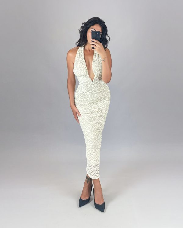 Halter Lace Maxi Dress – Beige