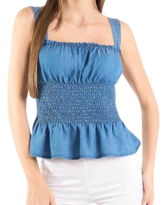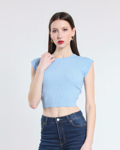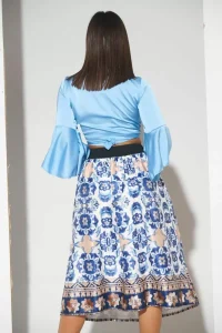 Satin Tie-Front Bell Sleeve Crop Top – Sky Blue