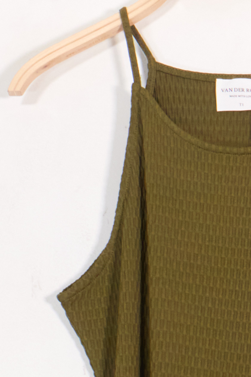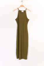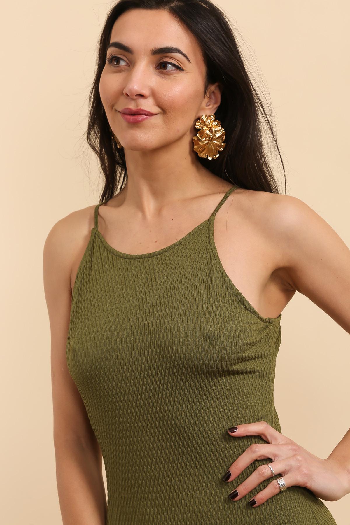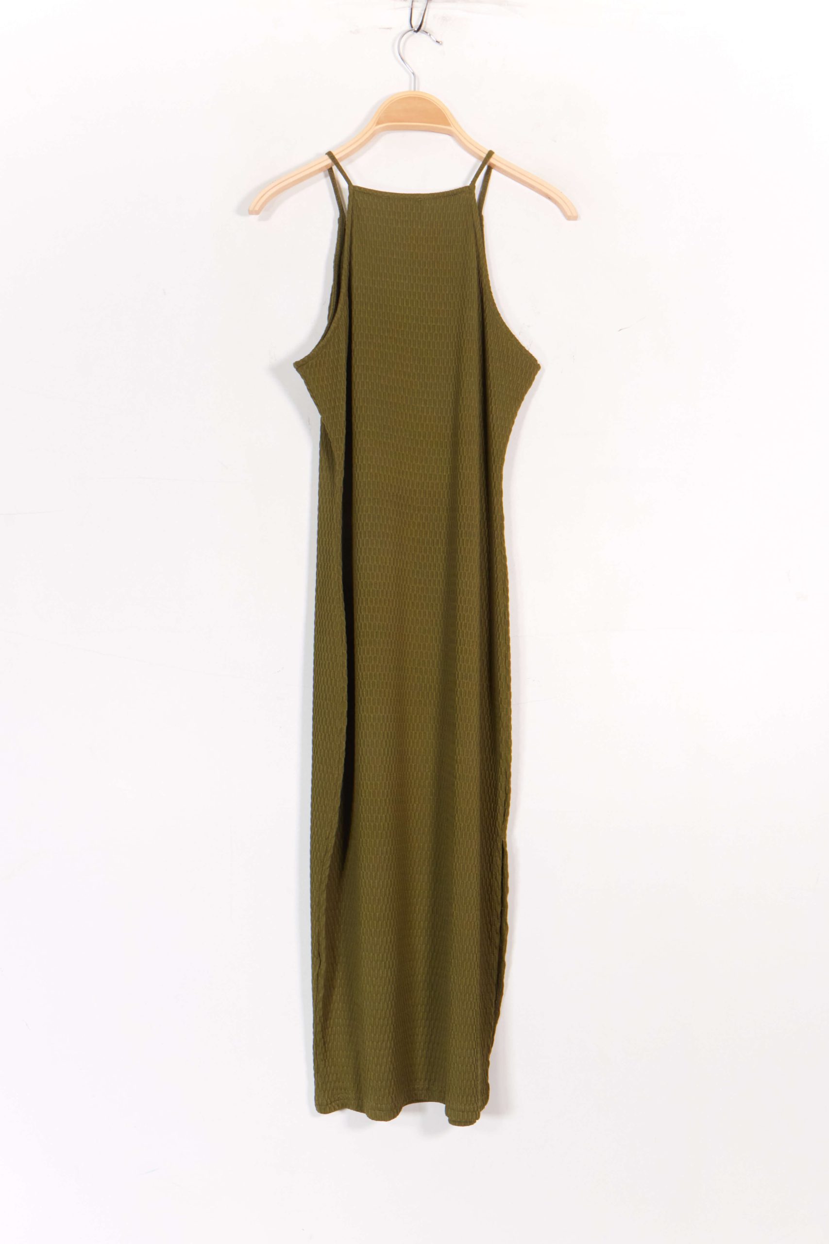Long Stretch Textured Fabric Dress – Khaki