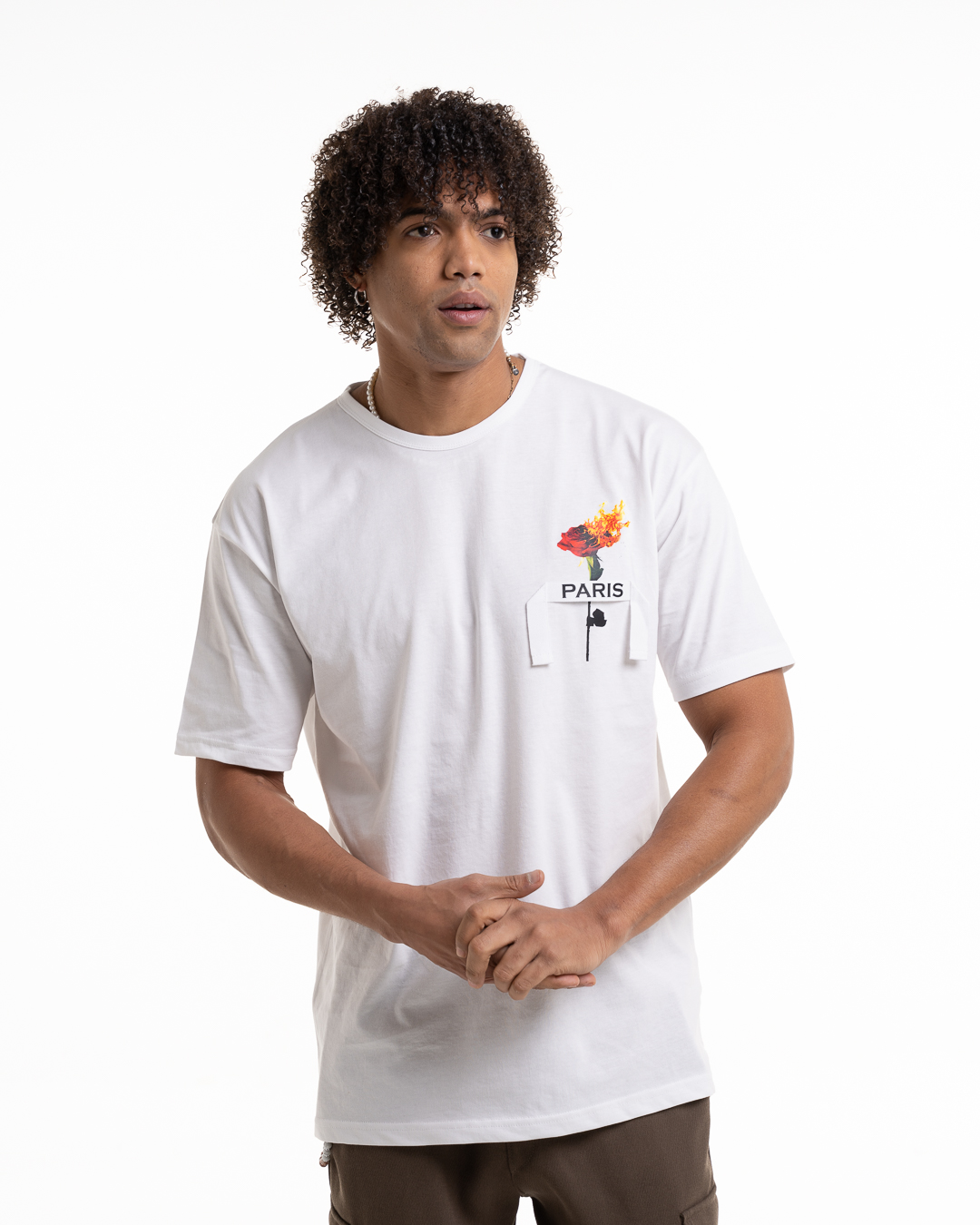 MRT Martini short sleeve oversized t-shirt in white with fire rose print detail.